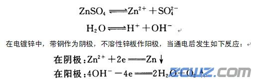 噴射式不溶性陽極電鍍鋅是采用硫酸鋅作為電解液,硫酸鋅在水中電離,其化學反應過程如下: