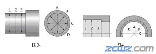 3、 應(yīng)反省一切與軸承接觸的組件的尺寸和外形公役(圖2):圓柱形軸頸的直徑,凡間運(yùn)用千分尺測(cè)量各三個(gè)平面的四個(gè)點(diǎn)(圖3)。軸承箱(座)的孔徑,凡間運(yùn)用內(nèi)量規(guī)測(cè)量各三個(gè)平面的四個(gè)點(diǎn)(圖4)。