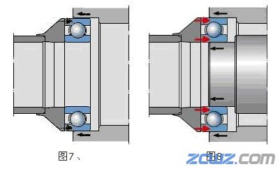 9、 軸承箱(座)為過盈共同:運(yùn)用礦物油細(xì)微光滑軸承的外圓外表。裝置時(shí),確保軸承裝置后與軸承箱(座)垂直,運(yùn)用適宜的套筒施力在外圈(圖7)。