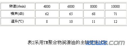 通過表2試驗結(jié)果得知,采用TM聚合物潤滑油潤滑主軸軸承完全能夠滿足高速型主軸的設(shè)計噪聲和溫升的技術(shù)要求。