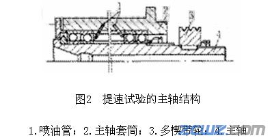 采用TM聚合物潤滑油做提速試驗的主軸結(jié)構(gòu)如圖2所示,試驗結(jié)果見表2。