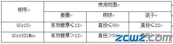 高碳鉻軸承鋼在全世界得到廣泛采用,最常用的牌號(hào)是GCr 15和GCr15SiMn,在我國(guó)用量約占軸承鋼總量的80%以上,這兩種鋼的性能基本相同,但GCr15SiMn鋼的淬透性比GCr15鋼好,因此對(duì)于較大尺寸的軸承零件,宜采用GCr15SiMn鋼,高碳鉻軸承鋼廣泛用于制造滾動(dòng)軸承套圈和滾動(dòng)體,其使用范圍列于表6-1。