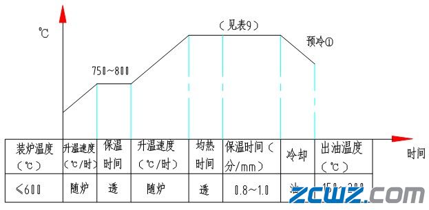 ⑵ 出油溫度為250~300℃,不得低于250℃,并準(zhǔn)備一臺350~400℃的回火爐,出油后立即入回火爐。