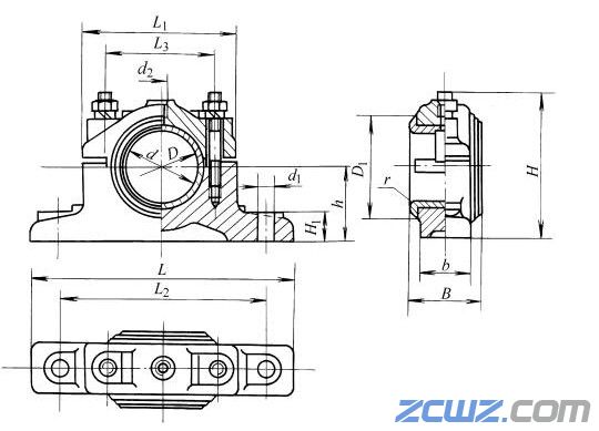 對開式二螺柱正滑動軸承座尺寸