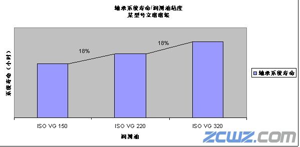 圖2:不同粘度的潤(rùn)滑油對(duì)軸承系統(tǒng)壽命影響