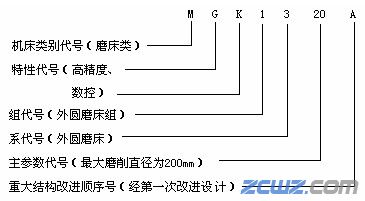磨床結(jié)構(gòu)性能的重大改進(jìn)用順序A、B、C……表示,加在型號的末尾。