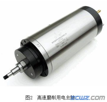 高速電主軸(圖2)起源于內(nèi)表面磨削行業(yè),在以內(nèi)表面磨加工為主導的軸承和汽車零部件制造業(yè)得到了廣泛的使用。多年來,國內(nèi)有關工程技術人員一直在堅持不懈地努力攻克技術難關,先后開發(fā)出多代一系列用于內(nèi)表面磨削的電主軸,轉速從3000~240000r/min,功率從0.2kW~20kW。目前,國產(chǎn)電主軸已經(jīng)大量裝備了我國全自動軸承內(nèi)表面磨床,使零件內(nèi)表面磨削線速度由35M/S提升到75M/S,大大提高了生產(chǎn)效率,降低了產(chǎn)品成本,使我國成為普通軸承和汽車零部件的生產(chǎn)大國。近年來,隨著油氣潤滑技術、恒溫冷卻和陶瓷球軸承等新技術的發(fā)展,為高速電主軸技術水平的提高創(chuàng)造了有利條件,新一代電主軸朝著具有更大的功率、更高的速度和更高的剛性的方向快速發(fā)展。