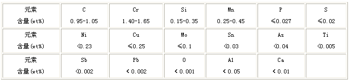 高碳鉻軸承鋼是滾動(dòng)軸承的最佳材料,它具備硬度高、抗?jié)L動(dòng)疲勞性強(qiáng)、耐磨性強(qiáng)、以及尺寸穩(wěn)定性好等特性。其化學(xué)成分為: