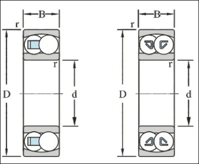 調(diào)心球軸承,其外圈為球形滾道而內(nèi)圈為雙滾道,該類軸承具有自動調(diào)心性能。因此,當軸承承受載荷產(chǎn)生彎曲或因加工誤差、安裝誤差造成內(nèi)圈軸線相對于外圈軸線產(chǎn)生傾斜時,仍能保證機械正常運轉(zhuǎn)。調(diào)心球軸承根據(jù)不同尺寸系列所允許的角度誤差數(shù)值略有不同。