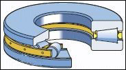 推力圓錐滾子軸承內(nèi)外滾道為錐形,滾動體亦為錐形滾子,其三者的延長線交匯于軸承軸心線的同一點。運動摩擦相對其他推力滾子軸承要小。