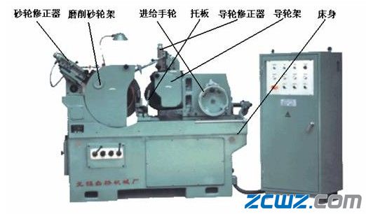 2、托架和導(dǎo)輪定位機(jī)構(gòu)比普通外圓磨床頂尖、中心架機(jī)構(gòu)支承剛性好,切削量可以較大,并有利于細(xì)長(zhǎng)軸類(lèi)工件的加工,易于實(shí)現(xiàn)高速磨削和強(qiáng)力磨削。