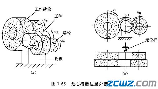 導(dǎo)輪的軸線與砂輪軸線平行,工件不作軸向移動(dòng)。無(wú)心橫磨法主要用于磨削帶臺(tái)肩而又較短的外圓、錐面和成形面等。