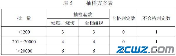 2.2 軸承內(nèi)、外套圈硬度、金相組織、工作面燒傷的抽檢和判定按表5 規(guī)定。