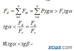 當(dāng)向心推力軸承承受徑向載荷R時,由于滾動體與滾道的接觸線與軸承軸線之間夾一個接觸角α,因而各滾動體的反力Ni并不指向半徑方向,而是沿接觸點(diǎn)的法線方向,它可以分解為一個徑向分力和一個軸向分力。用Pi代表某一滾動體反力的徑向分力,則相應(yīng)的軸向分力Fdi應(yīng)等于Pi tgα。所有徑向分力Pi的合力R與徑向載荷R相平衡;所有的軸向分力Fdi之和組成軸承的派生軸向力Fd,它迫使軸頸(連同軸承內(nèi)圈和滾動體)向右移動,并最后與軸向力Fa平衡。